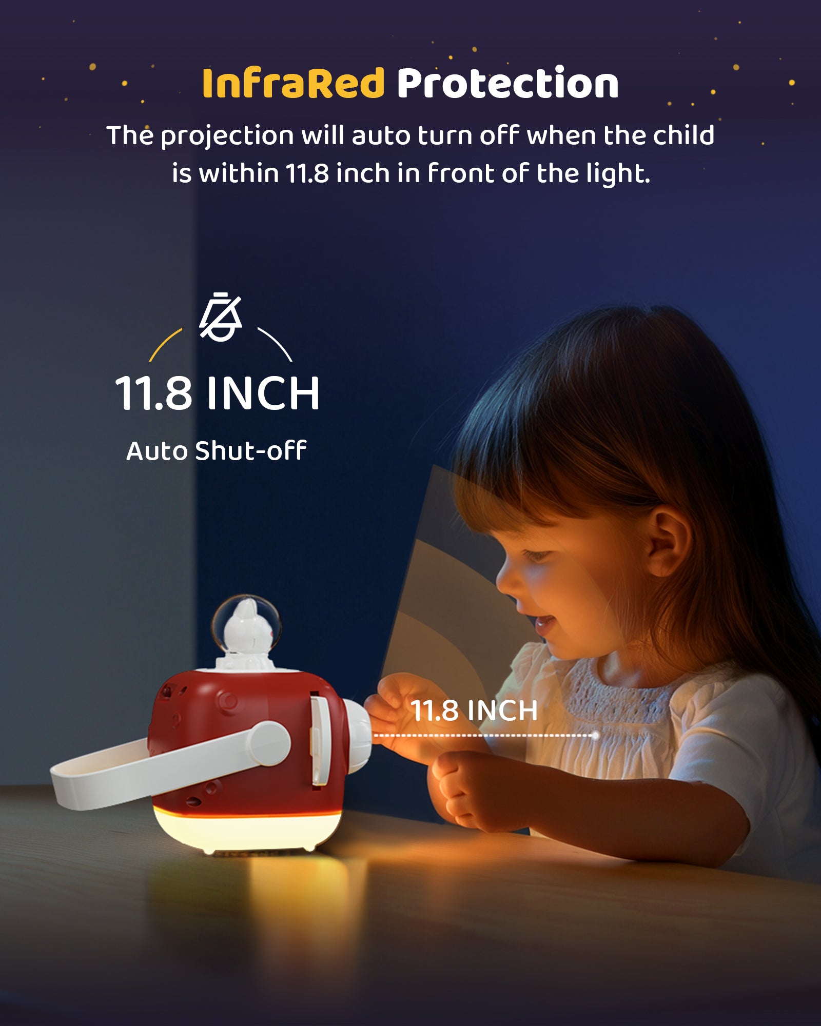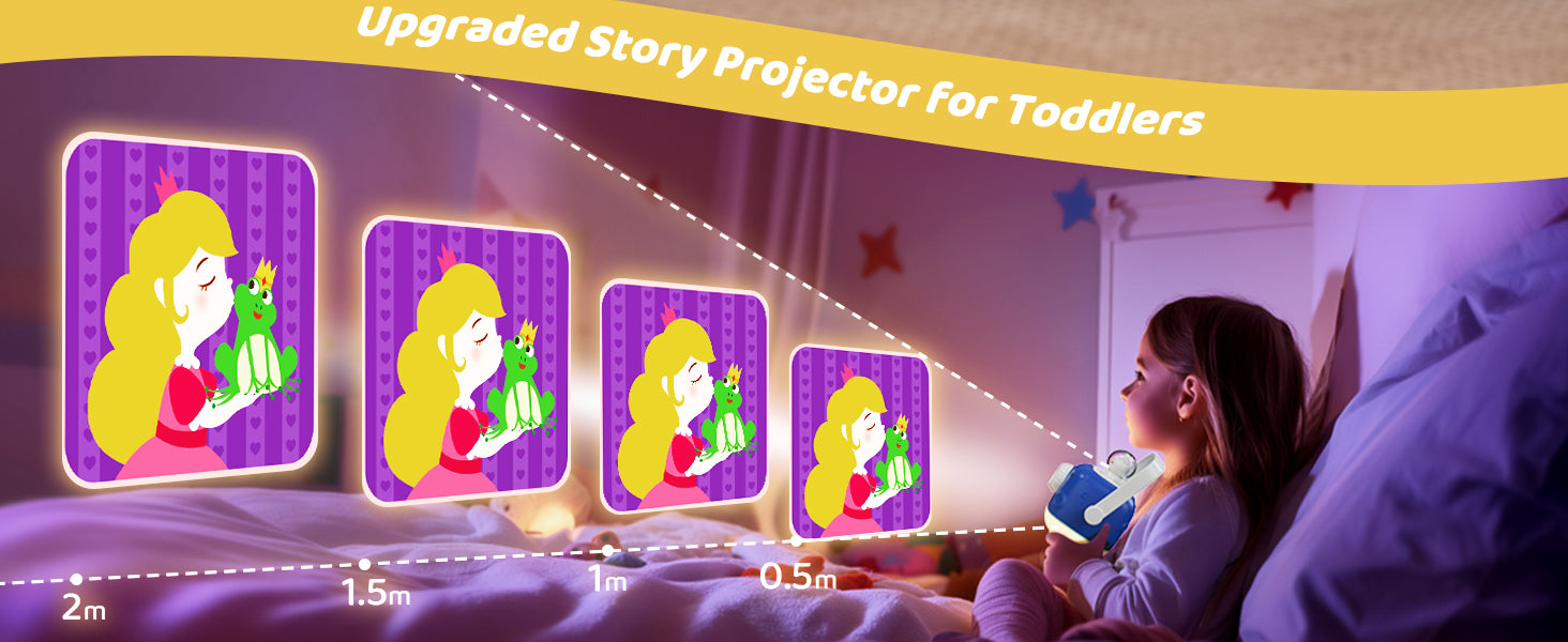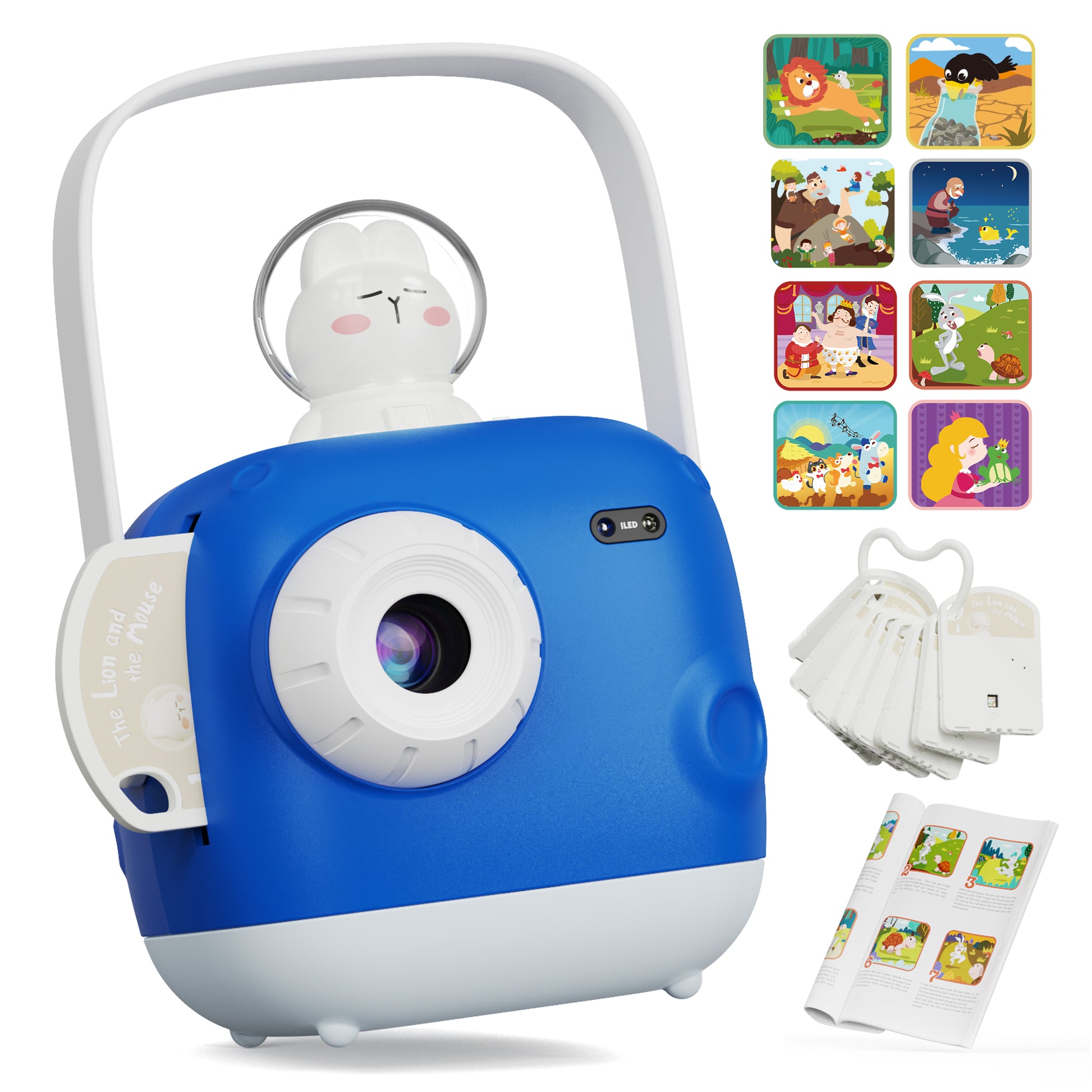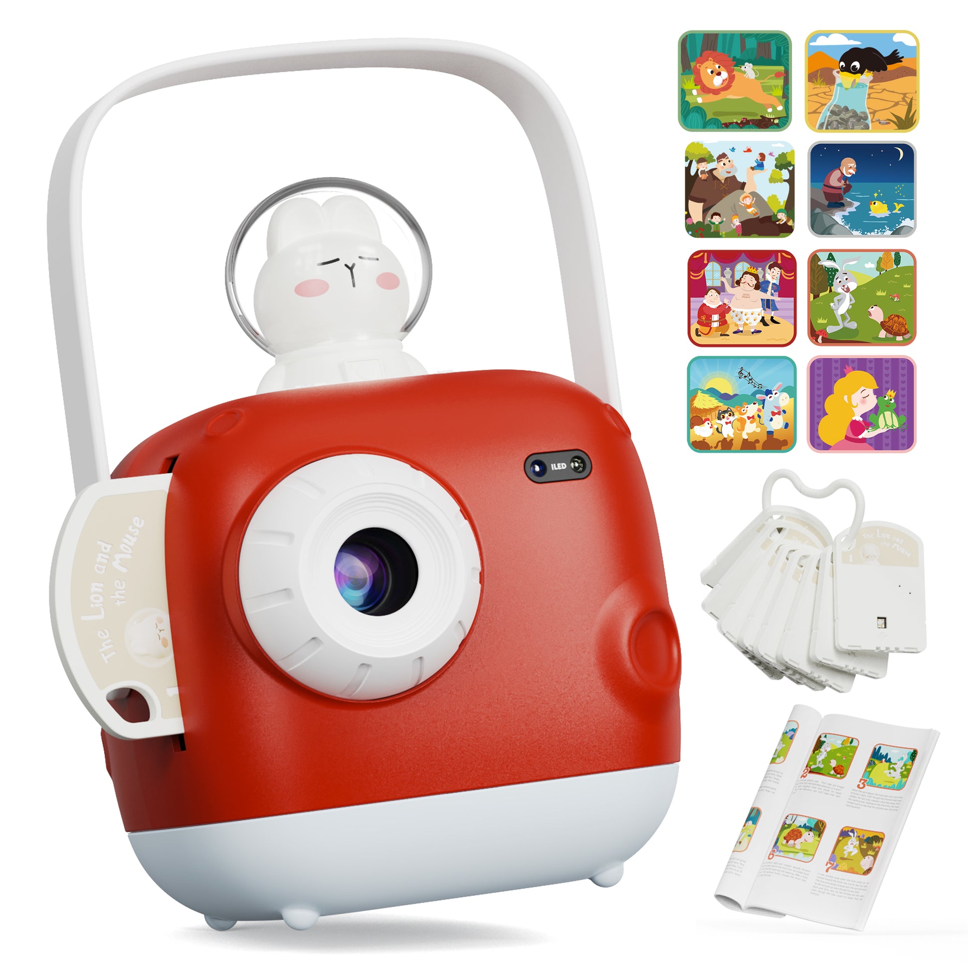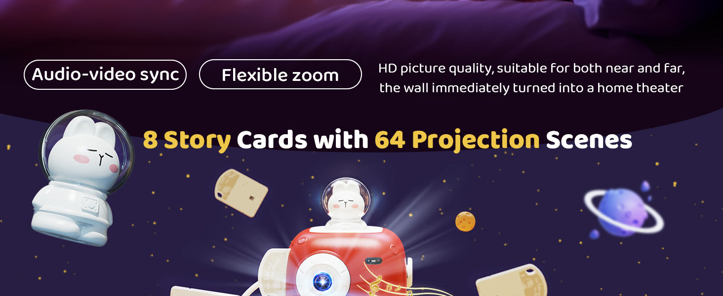 This projector comes with a book and 8 story slides. Each story is geared toward kids and has a positive moral to the story. The projector displays nicely on the wall and reads the story to the child. The rabbit has to be inserted in the projector for it to work. So you can keep the rabbit if you want to make sure your child does not stay up all night watching stories! This is a great way to wind down for bedtime.