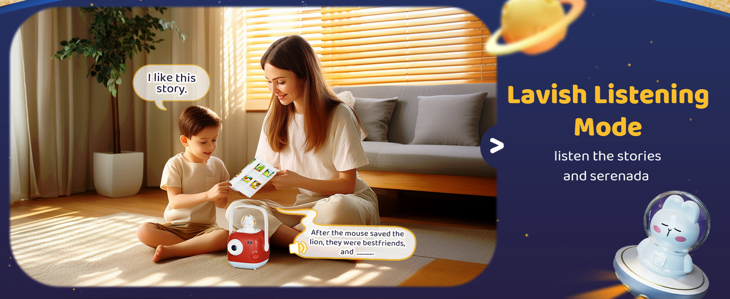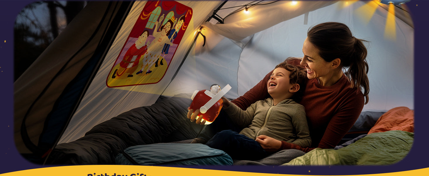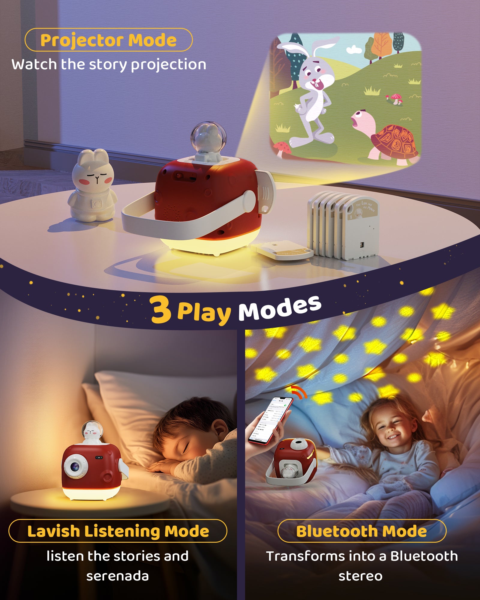 We got this for our nephew and it was a big hit! I love that this is small, rechargeable, portable, and that additional story modules are available. Pick a surface area of your choosing on which to project the story and listen in for some really cute audio. This is a great way to share a bedtime story with very little energy, creativity, or effort on your part - which is great for busy parents who have no charge left at the end of the day! Also really great to bring this on camping trips - definitely recommend!
