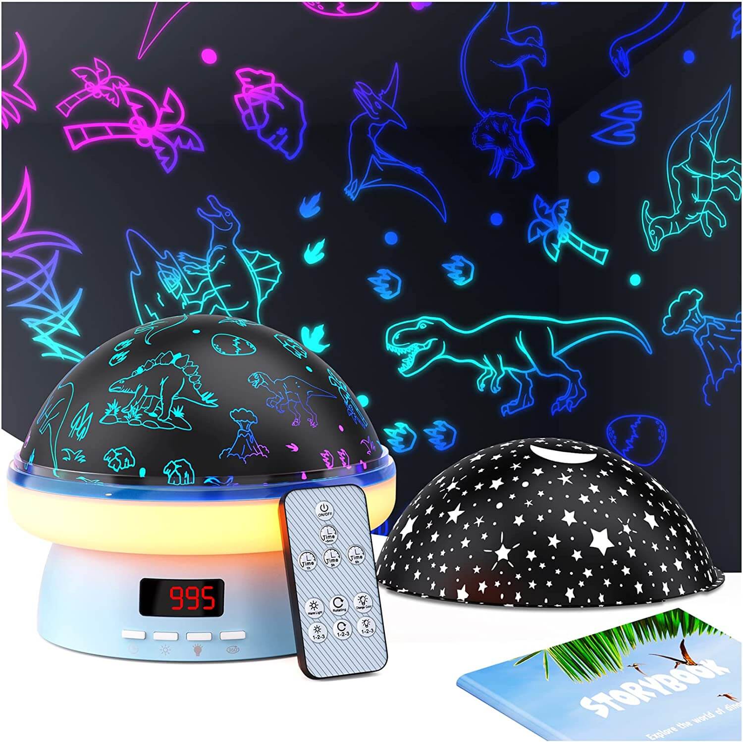 KOKODI 2 in 1 Starry & Dinosaur Night Light Projector for Kid, Dinosaur Toddler Toys Gifts 3-8 Year Old Boys